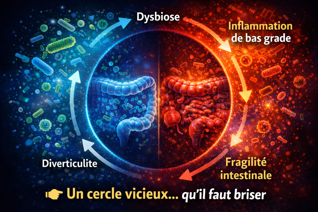 inflammation chronique → fragilité de la muqueuse → risque accru de diverticulite